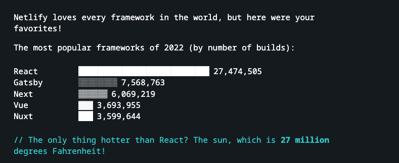 Good to know - I won’t plan on switching to LM until I actually need to or until WebP conversion is supported. FWIF, Cloudflare does this out of the box - and it’d be super helpful in boosting performance of our sites. Next best option would be to switch to use Next.js, but with so much of the Netlify community still using React (as shown in the year in review screenshot) it does seem like it’d at least be worth looking into.