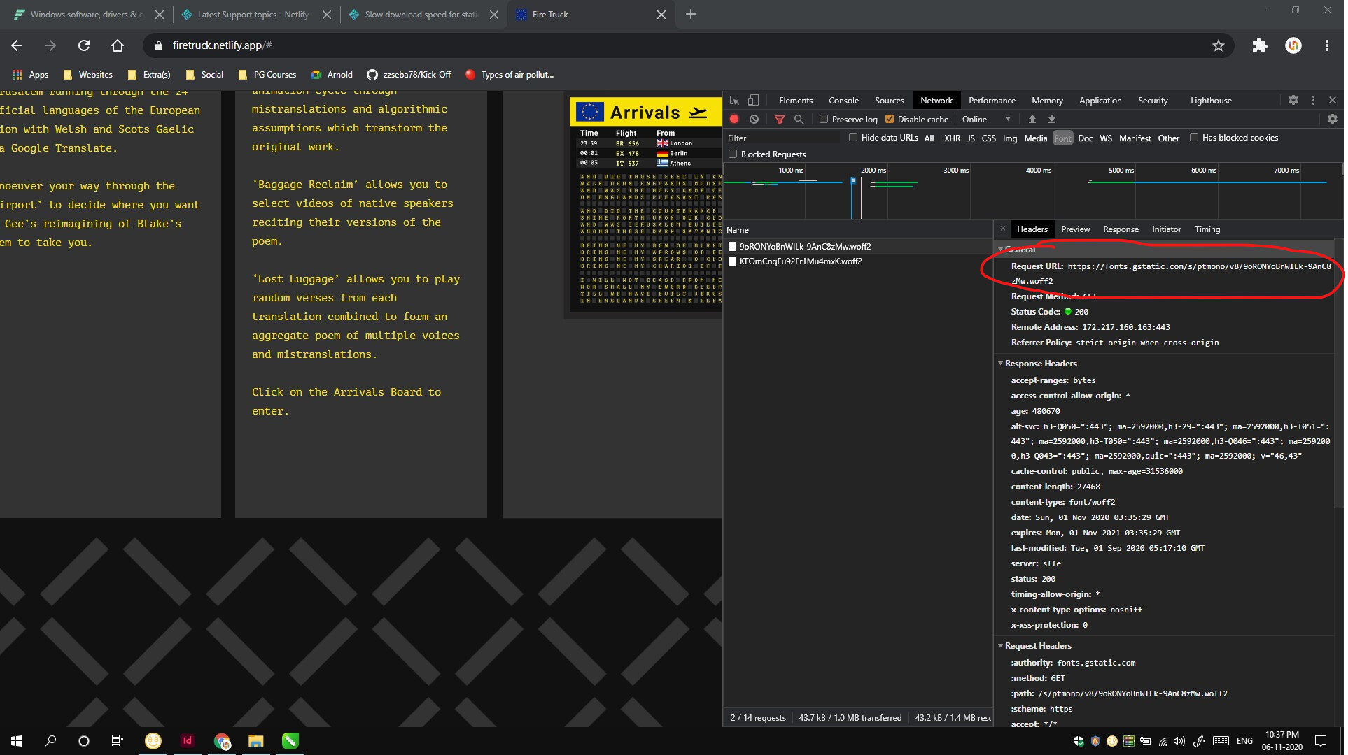 Well, I just checked the Network tab and the only fonts I found are being loaded from Google Fonts. There don’t seem to be any fonts that you’re hosting on Netlify.